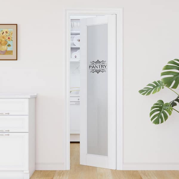 24 in. x 80 in. 1-Lite Tempered Frosted Glass White Primed Solid MDF Interior Door Slab with Peel Sticker (Pantry)