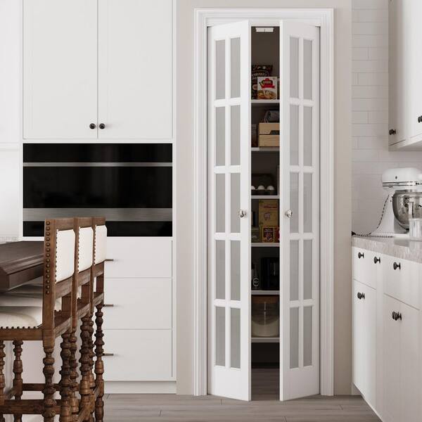 24 in. x 80 in. 10-Lite Frosted Glass Solid Core White Finished Glass Pivot Bi-fold Door with 2 Types of Hardware