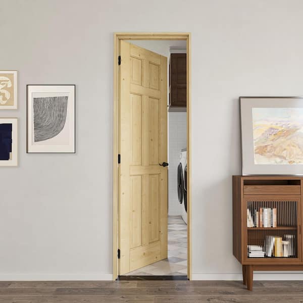 24 in. x 80 in. 6-Panel Left Solid Core Unfinished Pine Wood Single Interior Door with Quick Assemble Jamb