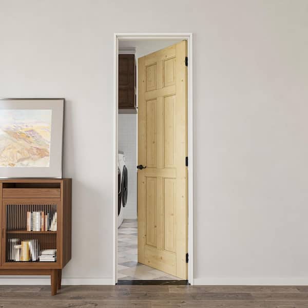 24 in. x 80 in. 6-Panel Right Solid Core Unfinished Pine Wood Single Prehung Interior Door with Quick Assemble Jamb