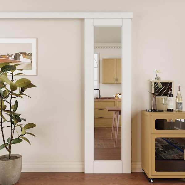 24 in. x 80 in. Hidden Track Style 1-Lite Clear Glass White Primed MDF Sliding Barn Door with Hardware Kit