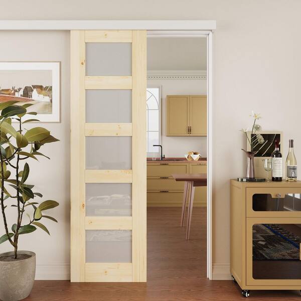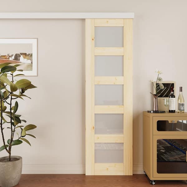 24 in. x 80 in. Hidden Track Style 5-Lite Frosted Glass Unfinished Glass Sliding Barn Door with Hardware Kit