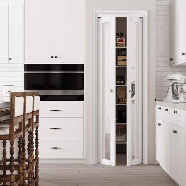24 in. x 80 in. Mirrored Glass Solid Core MDF Bi-fold Door Plus French Style Pivot Hardware (1-Lite White Finish)