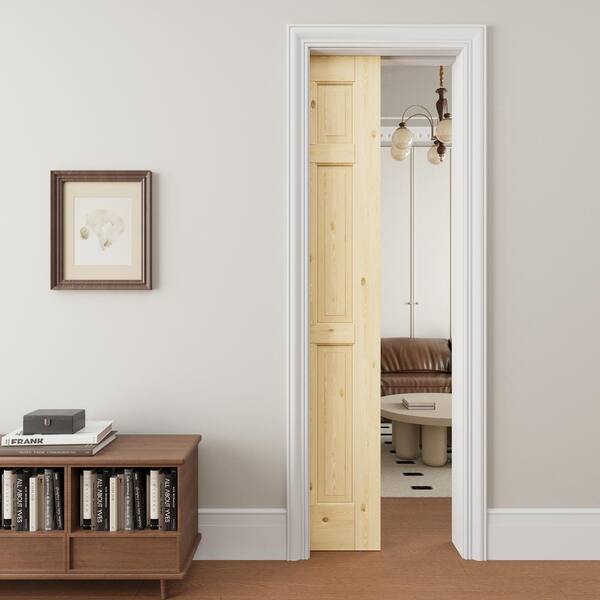 24 in. x 80 in. Paneled Wood 6-Lite Unfinished Door Solid Core Pine Pocket Door Frame and Hardware (Soft Close Incl)