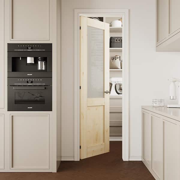 24 in. x 80 in. Unfinished Solid Core Pine Wood 1/2-Lite Tempered Frosted Glass Interior Door Slab