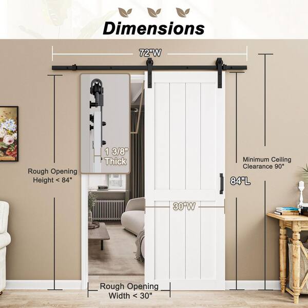 24 in. x 84 in. White Paneled H Style White Primed WithoutSoft Close MDF Sliding Barn Door with Hardware Kit