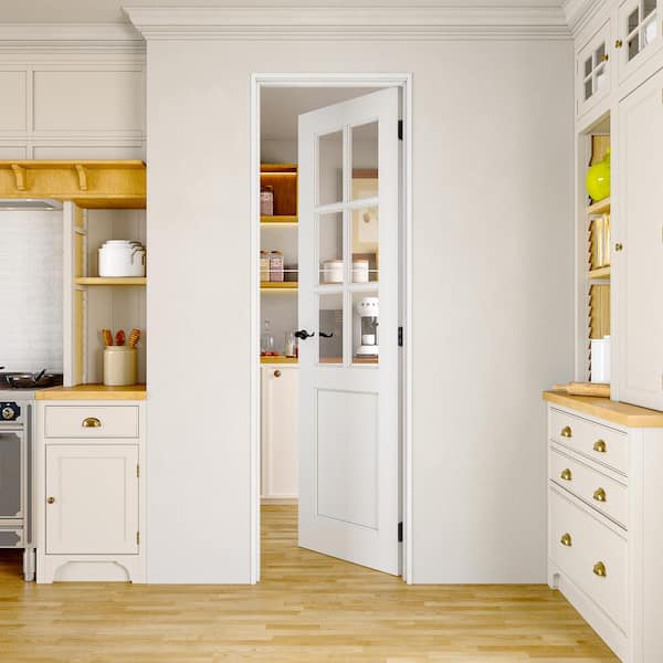 25 in. x 80 in. Universal/Reversible 6-Lite Tempered Clear Glass and Solid Core White Primed Interior Door Slab