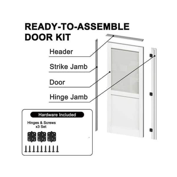 28 in. x 80 in. 1/2-Lite Frosted Glass Right White Solid Core Wood Single Prehung Interior Door with Quick Assemble Jamb