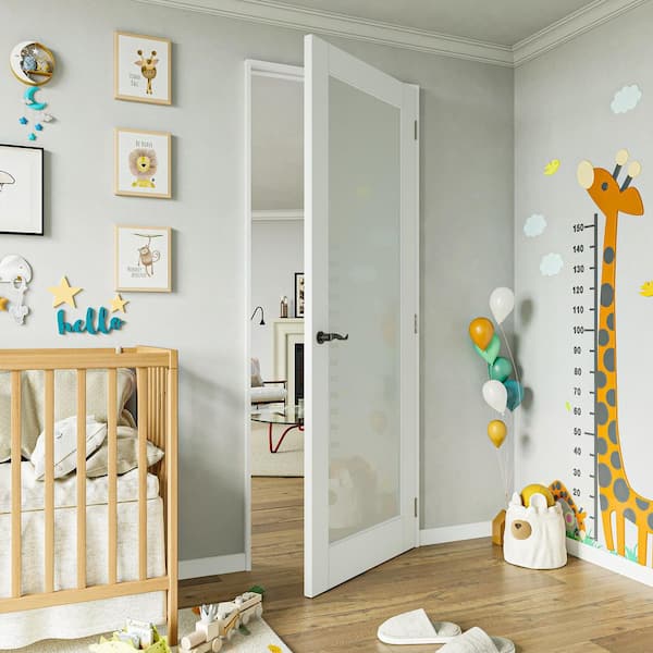 28 in. x 80 in. 1-Lite Frosted Glass Left Handed White Solid Core Glass Single Prehung Interior Door with Weatherstrip
