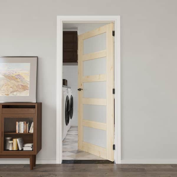 28 in. x 80 in. 5-Lite Tempered Frosted Glass Unfinished Solid Core Pine Wood Interior Door Slab