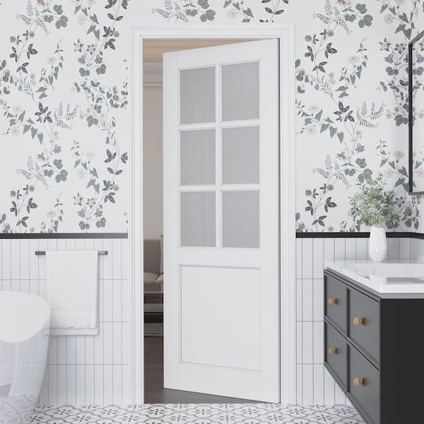 28 in. x 80 in. Modern 6 Lite Frosted Glass White Solid Core MDF Primed Standard Interior Door Slab