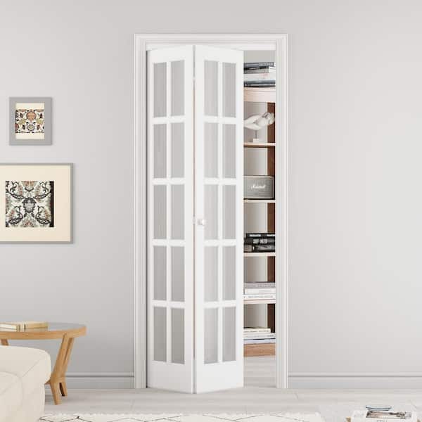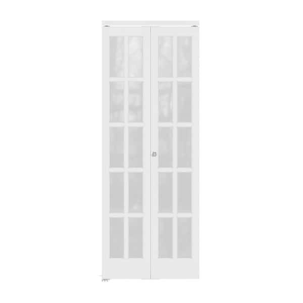 30 in. x 80 in. 10-Lite Frosted Glass Solid Core White Finished Glass Interior Closet Bi-Fold Door with Hardware