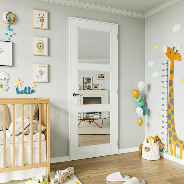30 in. x 80 in. 3 Lite Clear Glass White Solid Core MDF Wood Primed Standard Interior Door Slab