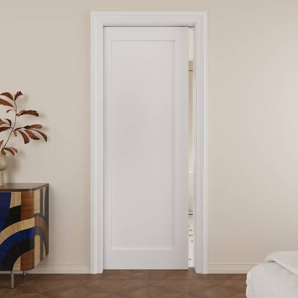 30 in. x 80 in. Paneled Blank White Primed Wood Pocket Sliding Door with Pocket Door Hardware Kit (Soft Close Included)