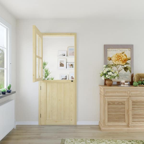 30 in. x 80 in. Unfinished Solid Pine wood Universal 4 Lite Clear Glass Dutch Door Interior Door Slab