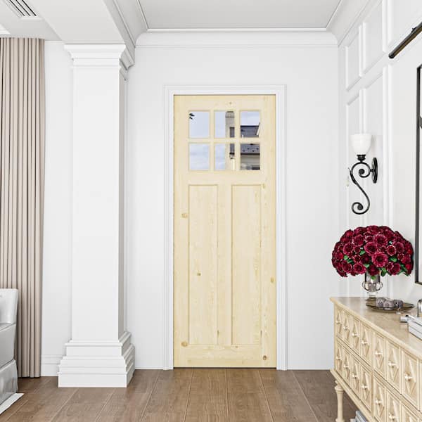 30 in. x 80 in. Universal/Reversible 6-Lite Clear Glass and 2-Panel Unfinished Pine Wood Front Door Slab
