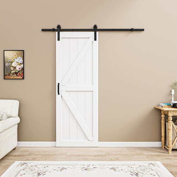 30 in. x 84 in. Paneled Off White Primed MDF British K Shape MDF Sliding Barn Door with Hardware Kit and Soft Close