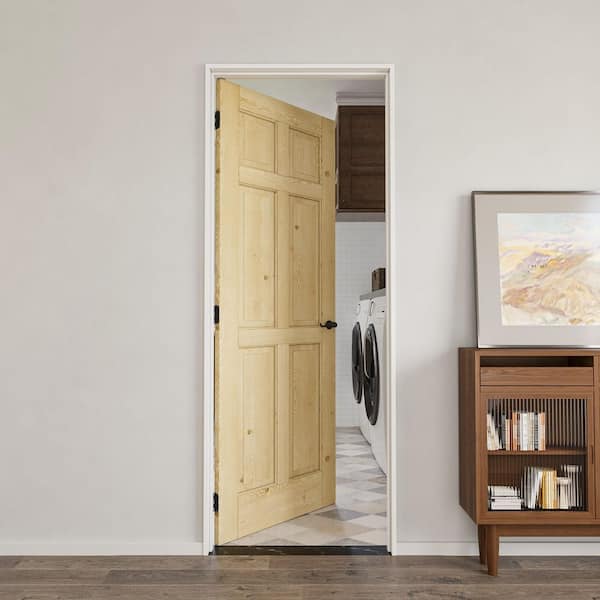 32 in. x 80 in. 6-Panel Left Solid Core Unfinished Pine Wood Single Prehung Interior Door with Quick Assemble Jamb