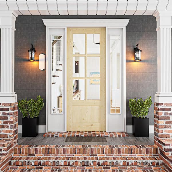 32 in. x 80 in. Right-Handed 6-Lite Clear Glass Unfinished Pine Wood Prehung Front Door with Quick Assemble Jamb