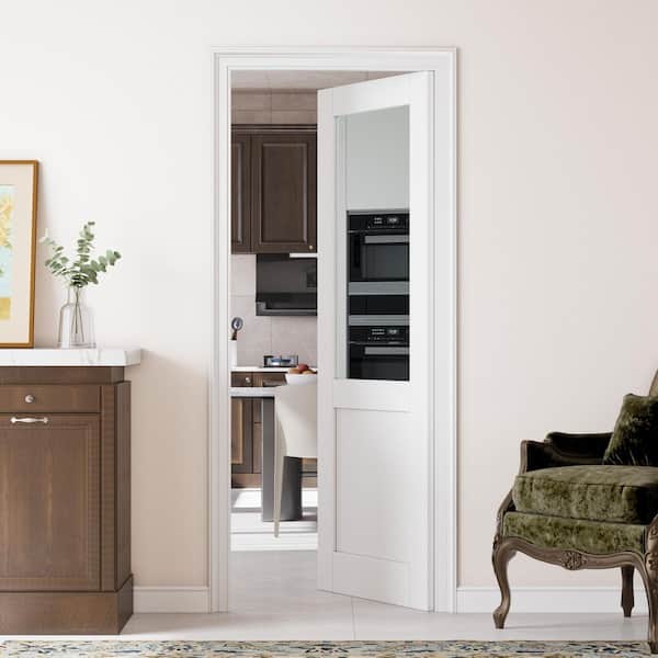 32 in. x 80 in. Solid Core Half Lite Mirrored Glass White Primed MDF Wood Interior Door Slab