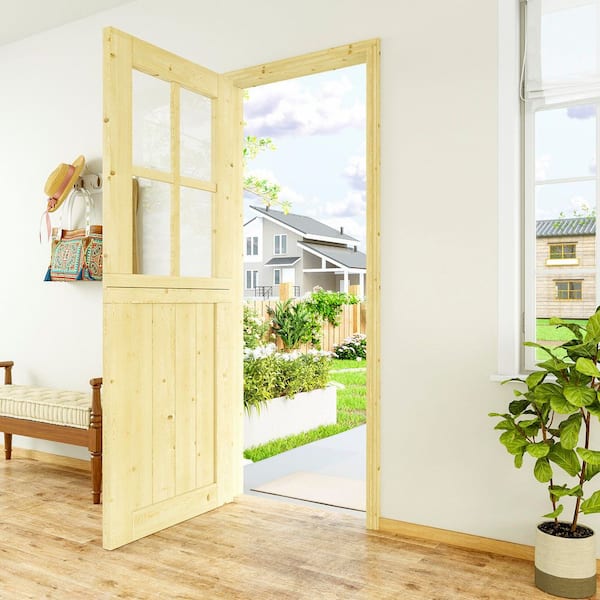32 in. x 80 in. Solid Pine Universal 4 Lite Clear Glass Unfinished Dutch Door Design Wood Front Door Slab