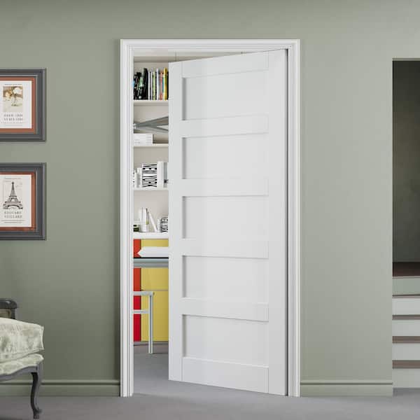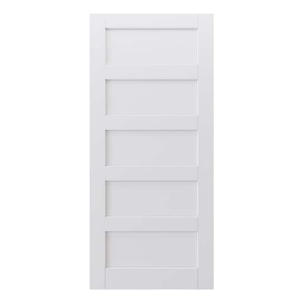 36 in. W. x 80 in. 5-Lite Paneled Blank Solid Core Composite Manufacture Wood White Primed Interior Door Slab