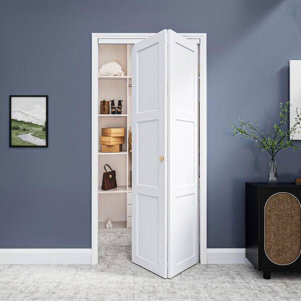 36 in. x 80 in. 3-Lite Panel Solid Core MDF White Finished Composite Closet Bi-Fold Door with Hardware
