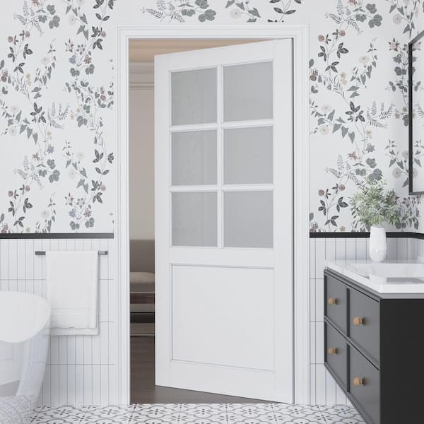 36 in. x 80 in. Modern 6 Lite Frosted Glass White Solid Core MDF Primed Standard Interior Door Slab