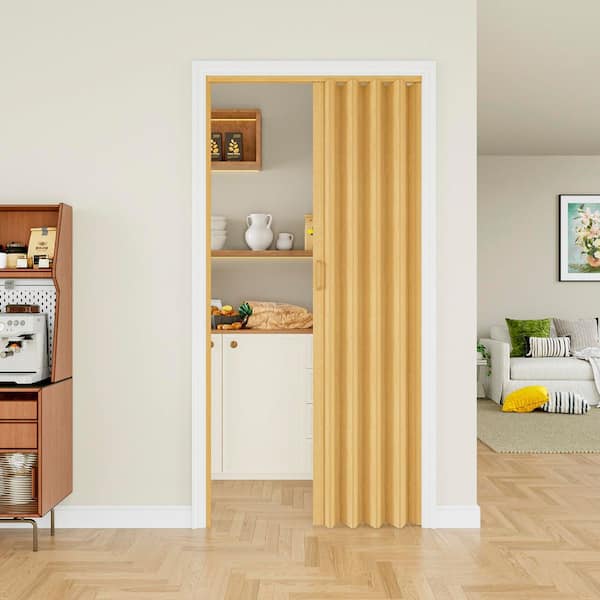 36 in. x 80 in. Oak Vinyl PVC Double Layer Accordion Door, Interior Folding Doors With Installation Hardware