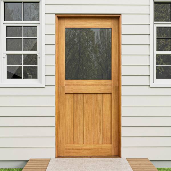 36 in. x 80 in. Pine Universal 9-Lite Clear Glass& 1-Panel Unfinished Dutch Wood Prehung Front Door+Quick Assemble Jamb
