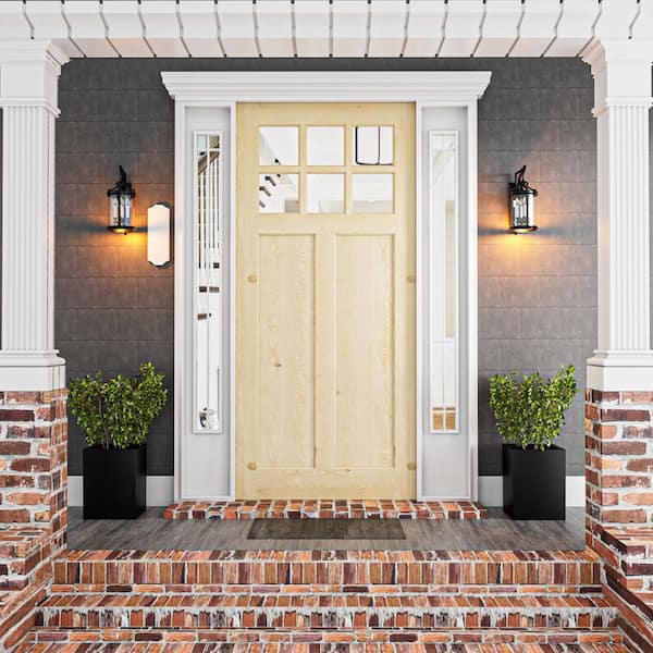 36 in. x 80 in. Right-Handed 6-Lite Clear Glass and 2-Panel Unfinished Pine Wood Prehung Front Door +Quick Assemble Jamb