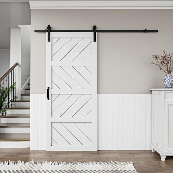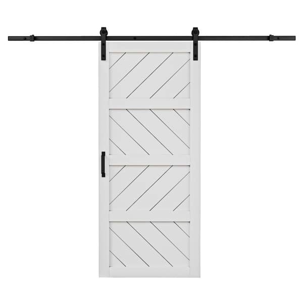 36 in. x 84 in. 4-Lites White Wave MDF Barn Door Slab with Installation Hardware Kit