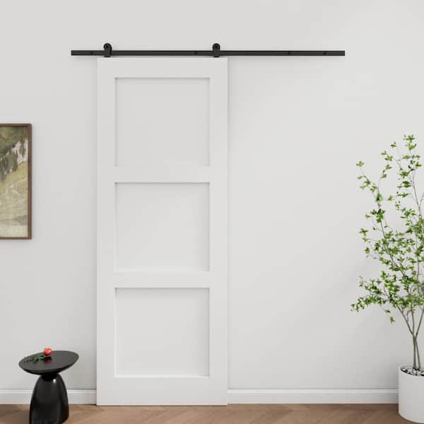 36 in. x 84 in. Paneled 5-Lites White MDF with PVC Finished Sliding Barn Door Slab with Hardware Kit and Soft Close