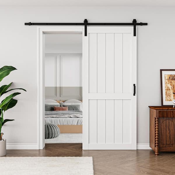 36 in. x 96 in. White Paneled H Style White Primed MDF Sliding Barn Door with Hardware Kit With Soft Close
