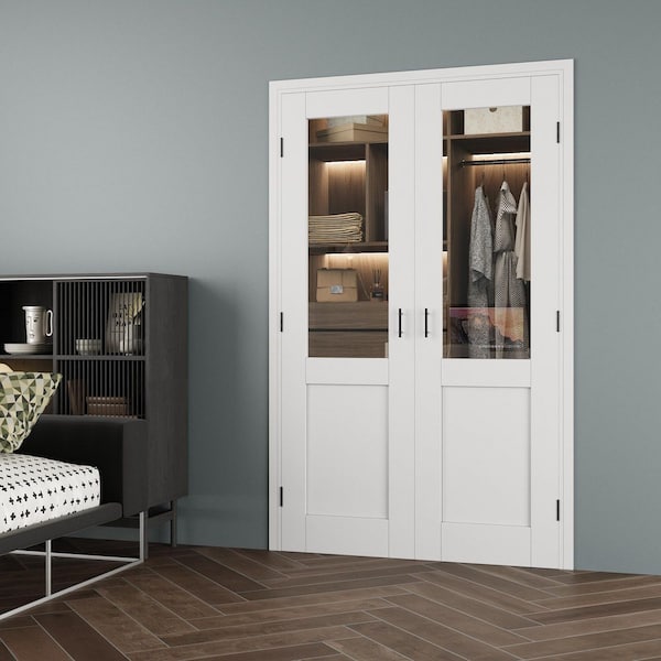 48 in. x 80 in. 1/2-Lite Clear Glass Universal White Solid Core Glass Double Prehung French Door + Quick Jamb&Ball Catch