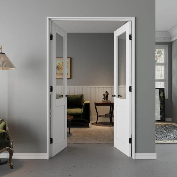 48 in. x 80 in. 1/2-Lite Clear Glass Universal White Solid Core Wood Double Prehung French Door with Quick Assemble Jamb