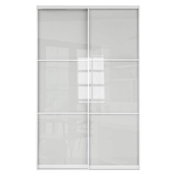 48 in. x 80 in. 3 Lite Tempered Frosted Glass with Aluminum Frame Closet Sliding Door with Hardware Kit