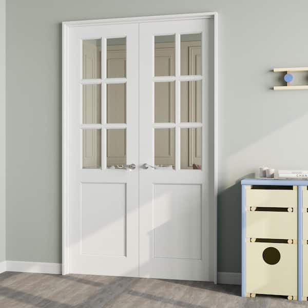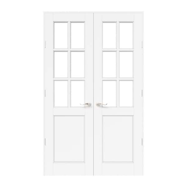48 in. x 80 in. 6-Lite Clear Glass Unicerse White Solid Core Wood Double Prehung French Door with Quick Assemble Jamb