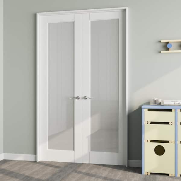 48 in. x 80 in. Universal Handed 1-Lite Frosted Glass White Solid Core MDF French Door with Quick Assemble Jamb