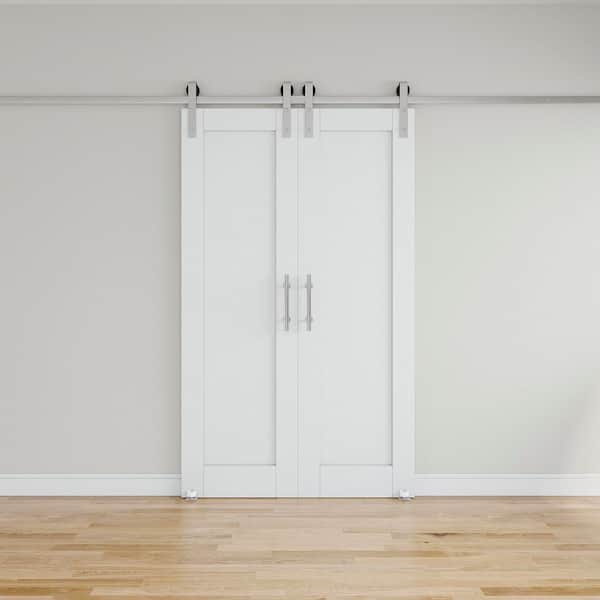 48 in. x 80 in. White 1-Panel Blank Solid Core Composite MDF Primed Sliding Barn Door with Hardware Kit Nickel Plated