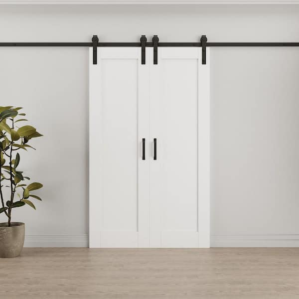 48 in. x 80 in. White Primed Paneled DIY Painting MDF Composite Sliding Barn Door with Hardware Kit