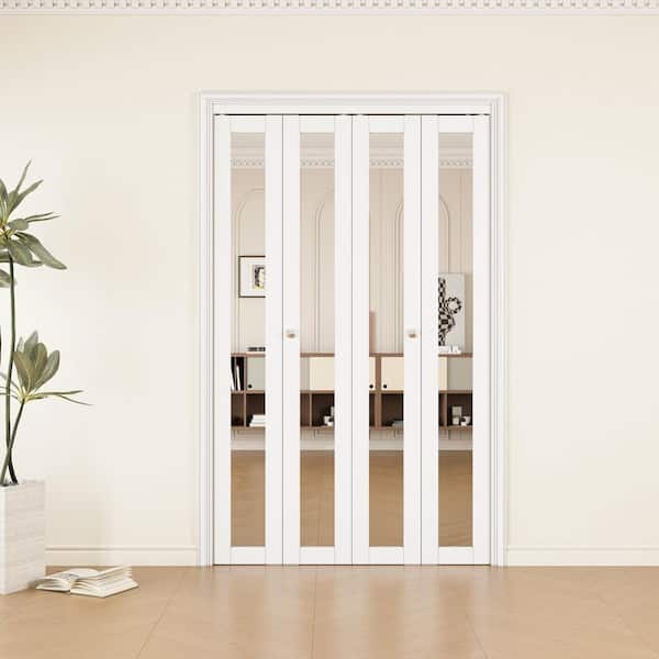 48 in. x 96 in. 1-Lite Mirrored Glass and Solid Core White Finished MDF Interior Closet Bi-fold Door with Hardware
