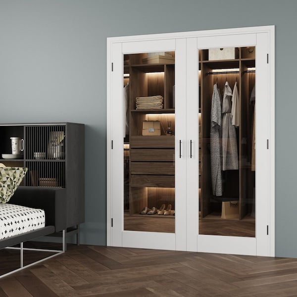 56 in. x 80 in. 1-Lite Clear Glass Universal White Solid Core MDF Double Prehung French Door w/Separate Jamb&Ball Catch