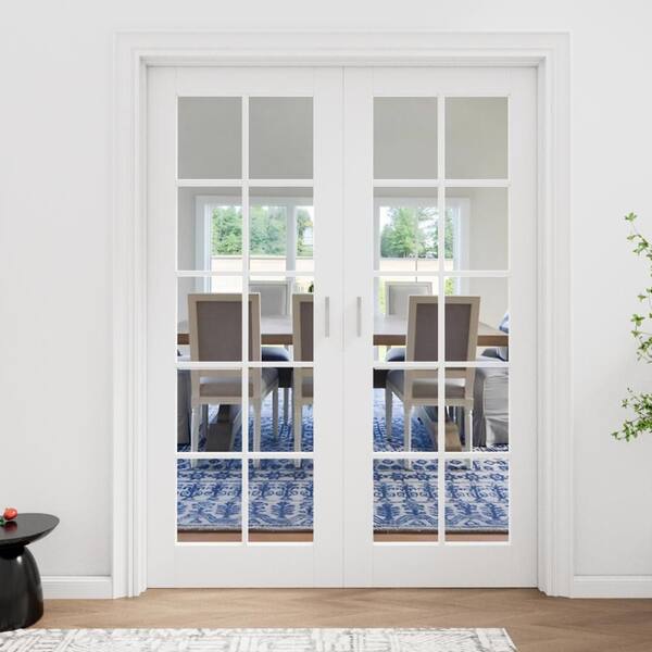 56 in. x 80 in. 10-Lite Clear Glass Universal White Solid Core Glass Double Prehung French Door with Quick Assemble Jamb