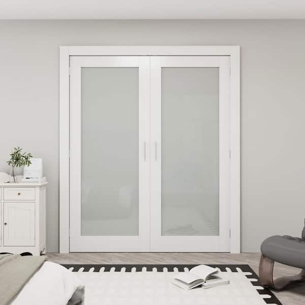 60 in. x 80 in. 1-Lite Frosted Glass White Solid Core Finished Glass French Door Panels Bi-fold Door with Ball Catch