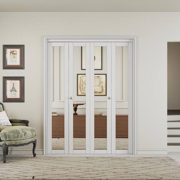 60 in. x 80 in. 1-Lite Mirror and MDF White Solid Core Prefinishied Closet Bifold Door with Hardware Kit