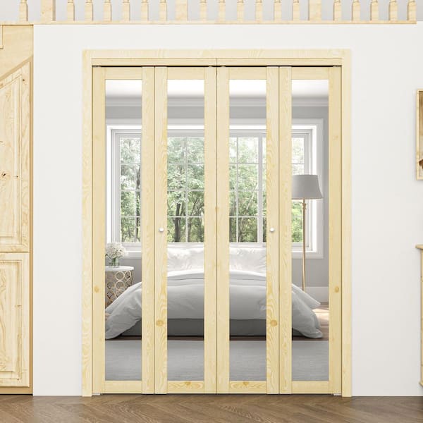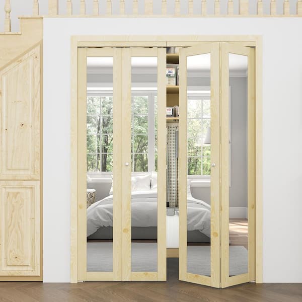 60 in. x 80 in. 1-Lite Solid Core Unfinished Pine Wood Mirrored Glass Interior Closet Bi-fold Door with Hardware