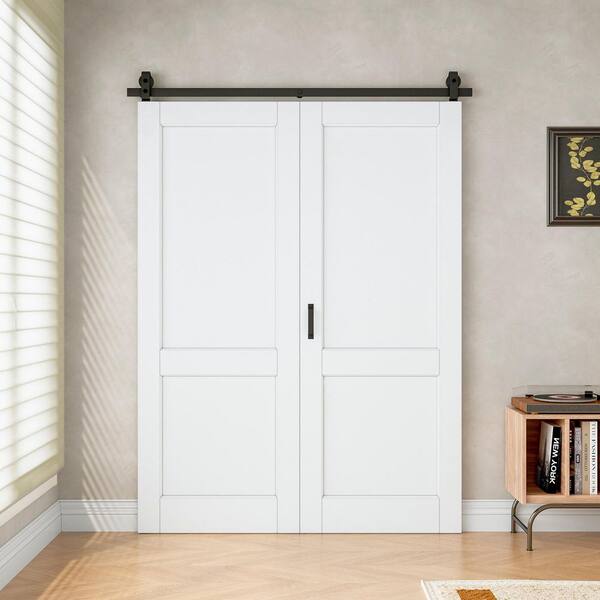 60 in. x 80 in. (2 30 in. Slabs) 2 Paneled White Primed DIY Painting MDF Bifold Sliding Barn Door with Hardware Kit