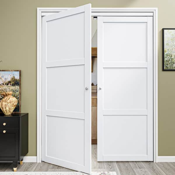 60 in. x 80 in. Solid Core Composite MDF Bi-Fold Door French Style Pivot Hardware (3-Lite White Finish)