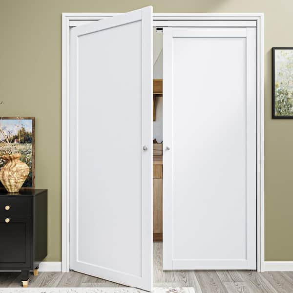 60 in. x 80 in. Solid Core Composite MDF Bi-fold Door + French Style Pivot Hardware (1-Lite White Finish)